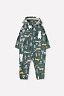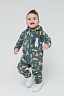 Комбинезон из набивного флиса. Съёмный капюшон на кнопках с подкладом из хлопкового трикотажа супрем, утягивается с помощью эластичной резинки со стопперами. Длинные рукава-реглан. На рукавах и штанинах отвороты с функцией рукавичек и носочков. Застёгивается на молнию. Предусмотрен ограничитель для защиты шеи и подбородка.Страна производитель Узбекистан.