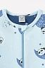 Комбинезон для мальчика из тонкого футера с начёсом с закрытыми ножками. Украшен набивным рисунком. Застёгивается по центру на витую молнию. Предусмотрен ограничитель для защиты шеи и подбородка. Обработка рукавов плоскими швами.Страна производитель Узбекистан.