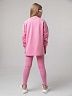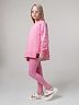 Костюм для детей школьного возраста. Свитшот без подкладки, прямого силуэта, с втачными рукавами с притачной манжетой, горловина округлой формы, линия плеч спущена, полочка со швом по центру, рукав со швом, идущим от проймы до низа, в боковых швах разрезы, уровень низа полочки короче низа спинки. Леггинсы прилегающие, на притачном поясе с внутренней резинкой, со штрипками по низу изделия. Состав:футер двухнитка 92% хлопок 8% лайкра.Страна производитель : Россия