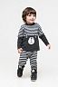 Вязаный детский комплект из полушерстяной пряжи, в полоску. Джемпер с длинными рукавами. Эластичные манжеты, горловина и пояс. В области плеча предусмотрена застежка на пуговицы. Штаны с эластичными манжетами, в поясе резинка. Спереди рисунок.Страна бренда Россия.
